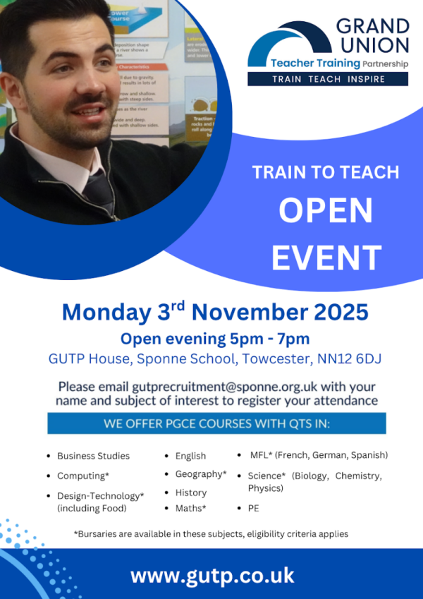 Our primary provider of trainee teachers is the Grand Union Teaching Partnership, based at Sponne School, Towcester.