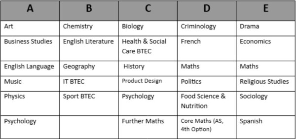 Preferred subjects to study in September (You must choose THREE from different blocks):